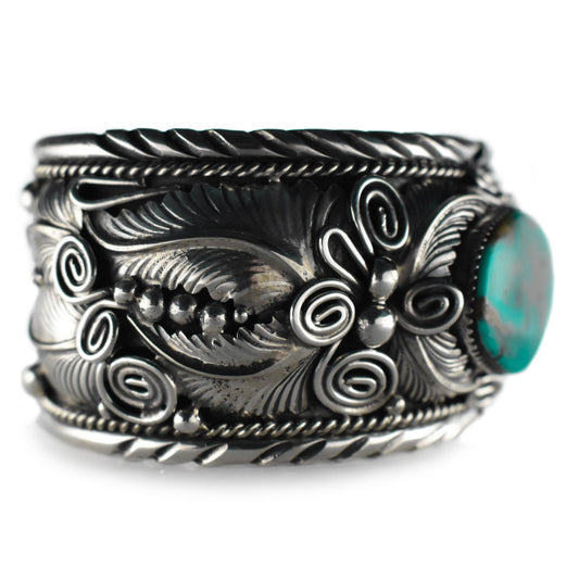 Turquoise Mountain Feathers & Stars Cuff by Terry Martinez - Rediscovered Vintage