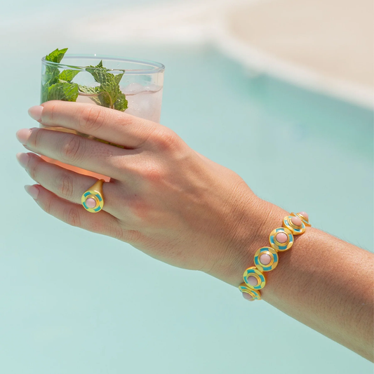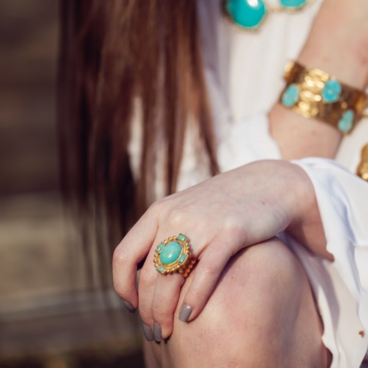 Circular Skyline Mosaic Sleeping Beauty Turquoise Ring by Julalita Lamy