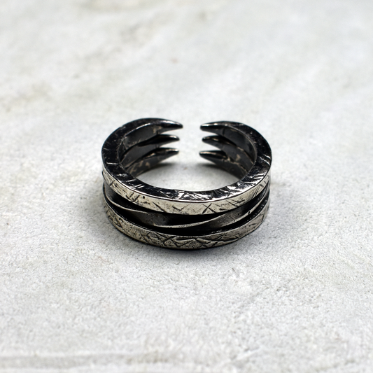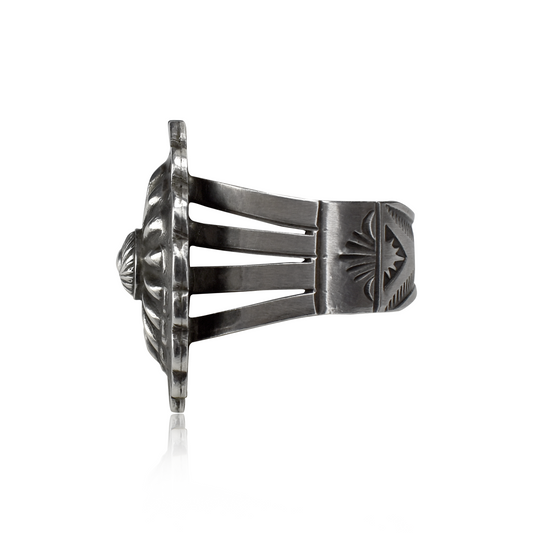 Hand-Stamped Sterling Silver Radial Ring with Four-Pronged Band by Fred Maloney