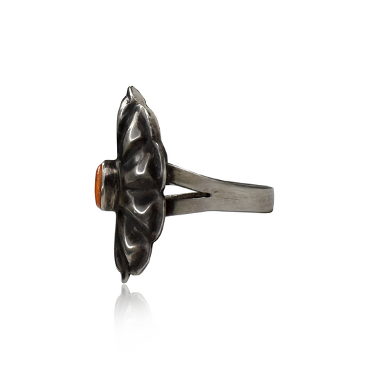 Hand-Tooled Silver Shield Ring with Spiny Oyster Inlay