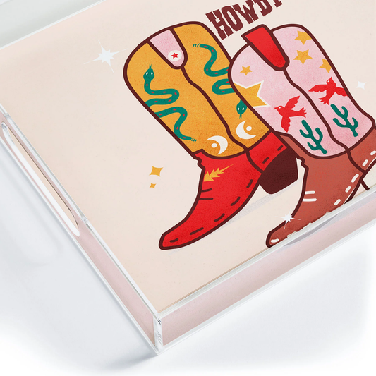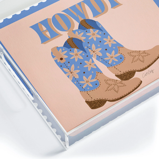 Howdy Cowgirl Blue Peach Acrylic Tray