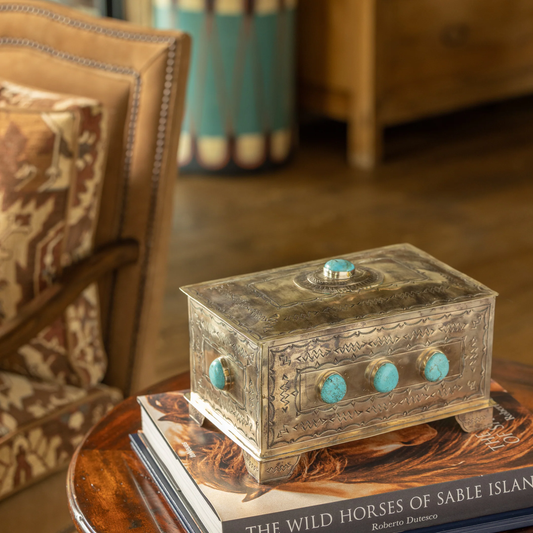 Number 8 Turquoise Arrow & Step Window Sandcast Cuff by Gilbert Begay