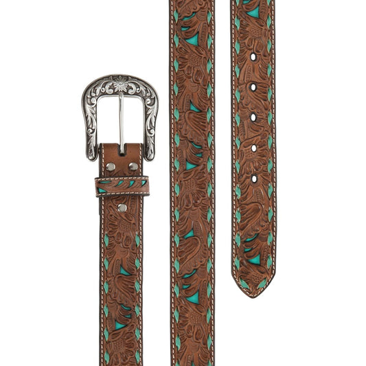 Nocona Women's Brown Embossed with Turquoise Inlay Belt