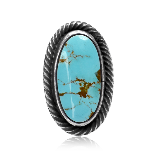Number 8 Turquoise Oval Ring with Rope Border by Justin Biltonen