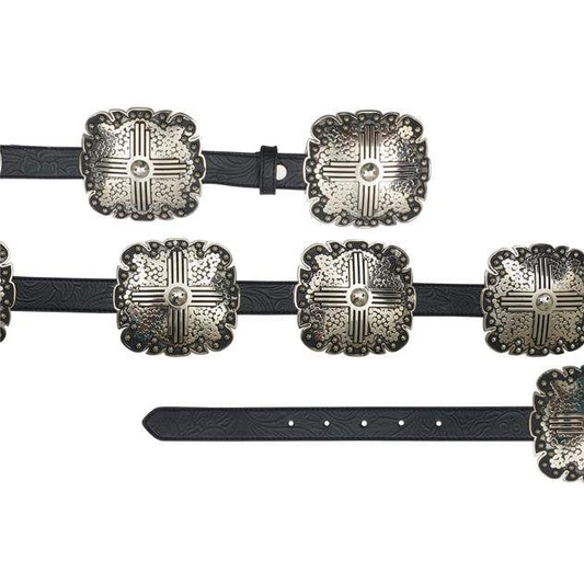 Angel Ranch Women's Black Floral Embossed Leather Concho Belt
