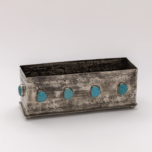 Stamped Planter with Turquoise