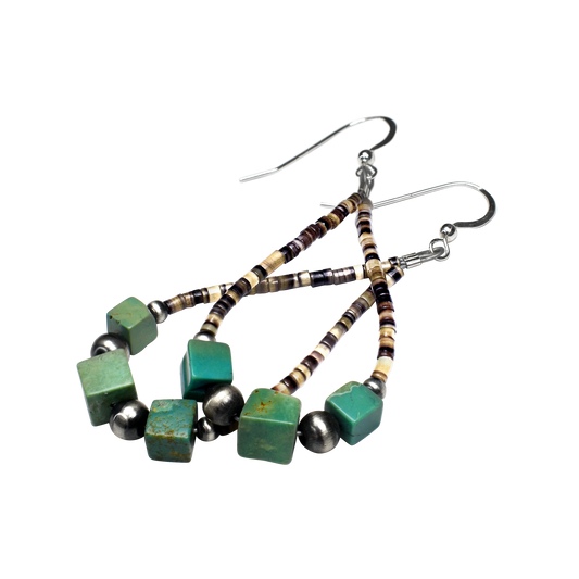 Natural Green Turquoise Cube & Heishi Teardrop Earrings
