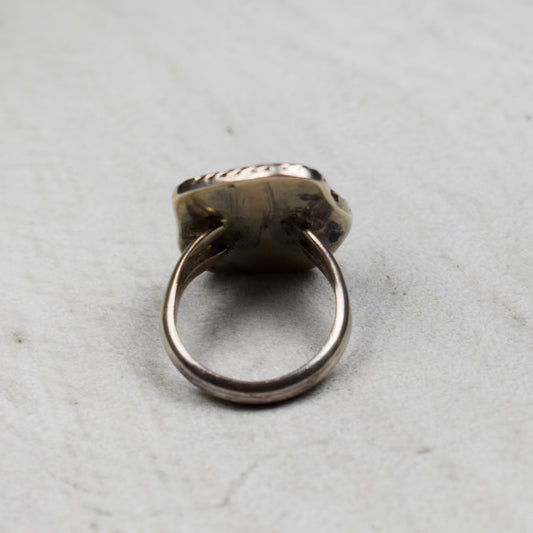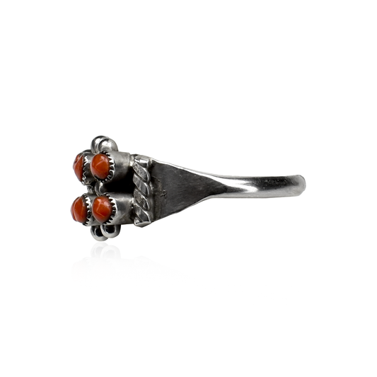 Hand-Tooled Silver Shield Ring with Spiny Oyster Inlay