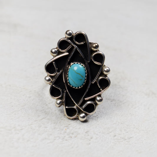 Vintage Sleeping Beauty Turquoise Oval Ring in Raised Asymmetrical Rope Setting