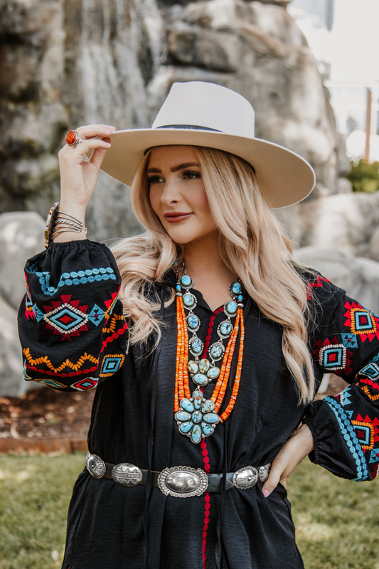 Sonora Sunset Triangular Tooled Pendant & Navajo Pearl Necklace
