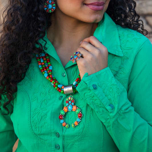 Blue Turquoise, Coral, Spiny Oyster, and Mojave Turquoise Naja Pendant