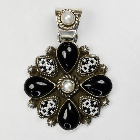 Pearl & Onyx Beadwork Cluster Pendant by Reklaw Silver
