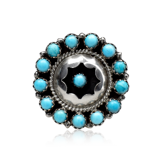 Radial Spirit Sleeping Beauty Turquoise Inlay Oval Ring by Norman Lee