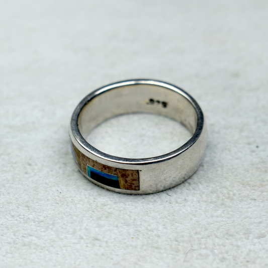 Studio GL Abstract Blue Opal Inlay Band Ring