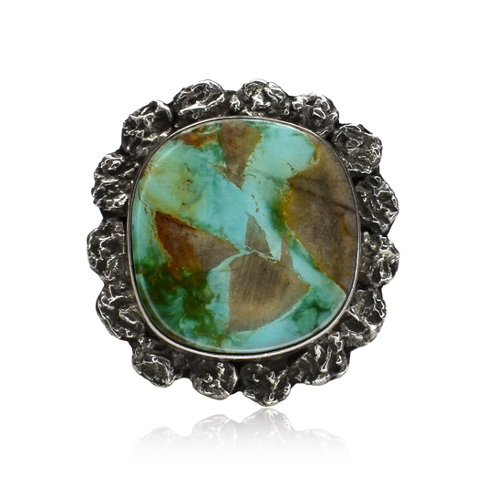 Painted Earth Square Royston Turquoise Ring by Benajmin Piaso