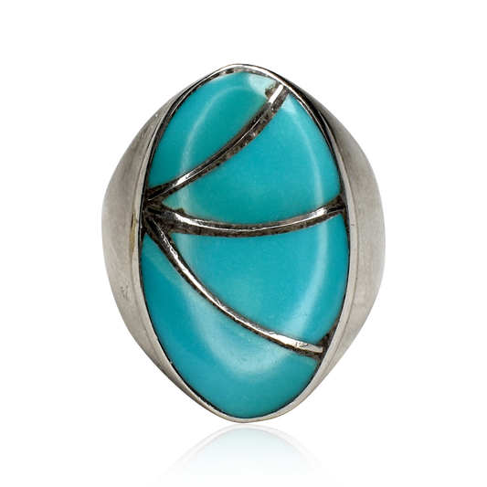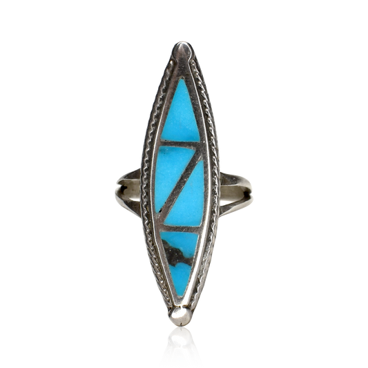 Vintage 1960s Sleeping Beauty Turquoise Horizon Inlay Marquise Ring