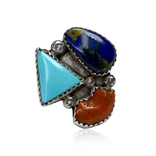 Desert Dream Trio Ring with Sleeping Beauty Turquoise, Lapis Lazuli, and Coral