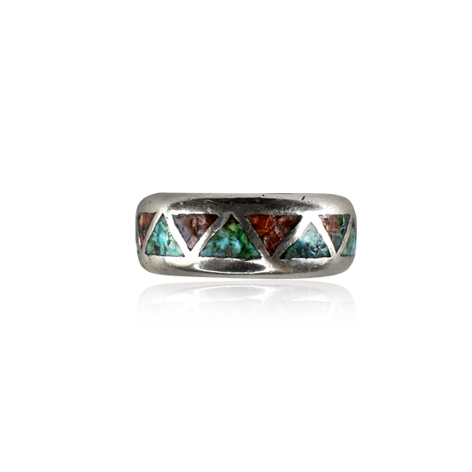 Vintage Turquoise and Coral Trianglular Chip Inlay Ring