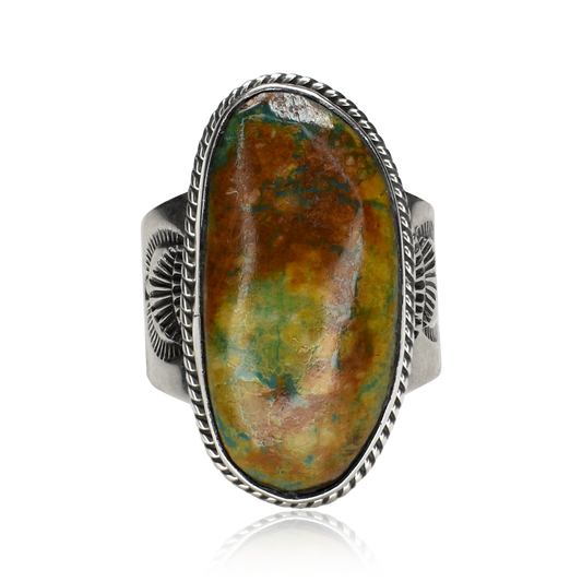 Golden Mesa Royston Turquoise Stamped Ring by J. Nelson