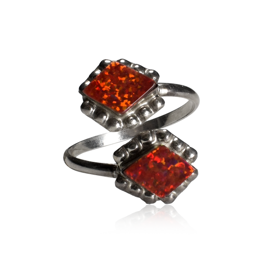 Red Opal Double Diamond Adjustable Ring