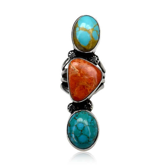 Sundown Canyon Spiny Oyster, Kingman and Royston Turquoise Ring by Teller Indian Jewelry