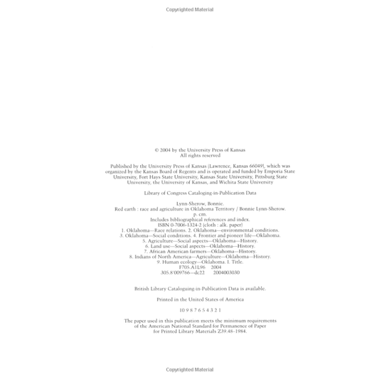 Red Earth: Race and Agriculture in Oklahoma Territory by Bonnie Lynn-Sherow