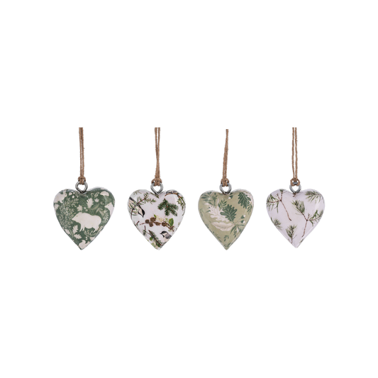 Green and White Mango Wood Mini Heart Ornaments
