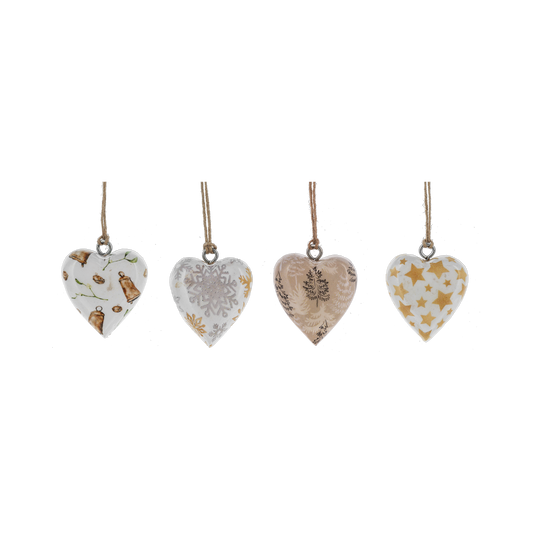 Tan and White Mango Wood Mini Heart Ornaments