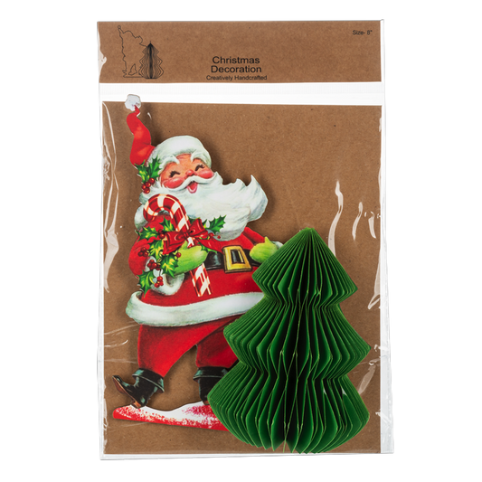 Vintage Paper Santa with Honeycomb Tree Figurine