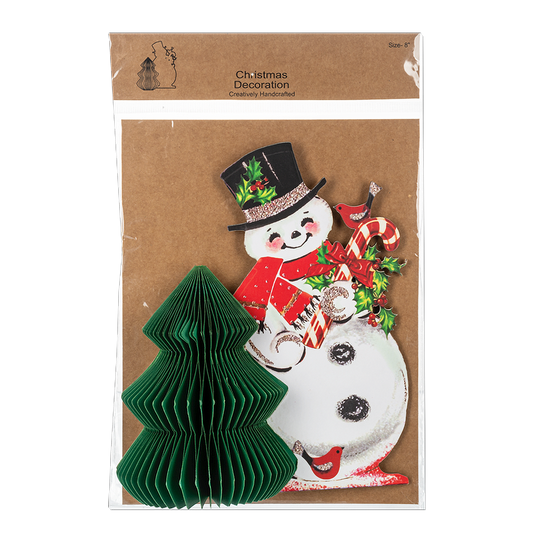 Vintage Paper Snowman with Honeycomb Tree Figurine