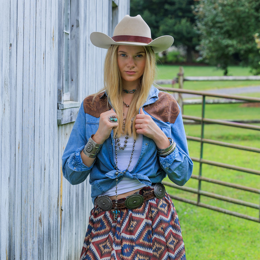 Nocona Women's Brown Embossed with Turquoise Inlay Belt