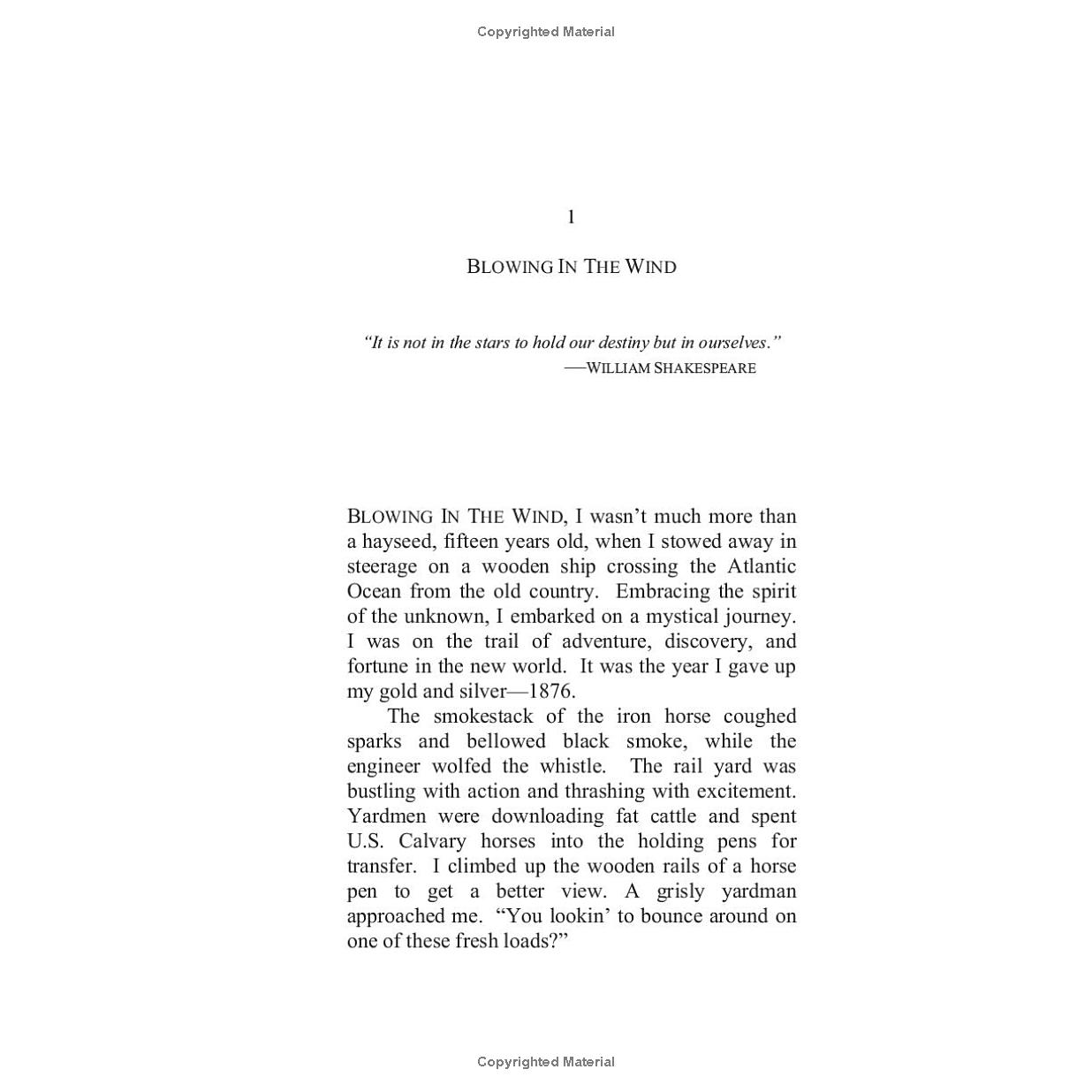 A young man, not yet sixteen, crosses the Mississippi in 1873 without fear. This book tells a magical story with wit and grit of unraveled characters and amazing experiences in a land bigger and more beautiful than any dream.