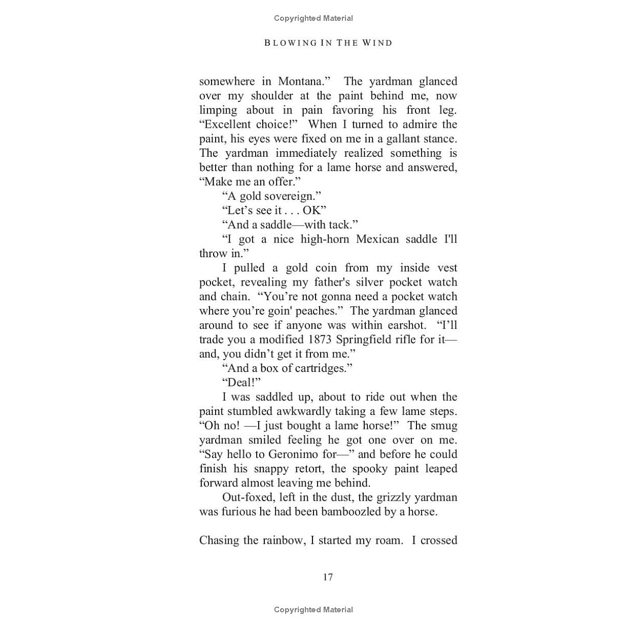 With empty pockets, a spark for life, and a wild sense of freedom, he tells his story in a cowboys' soup of words, following his heart while searching for adventure and fortune in a new world.