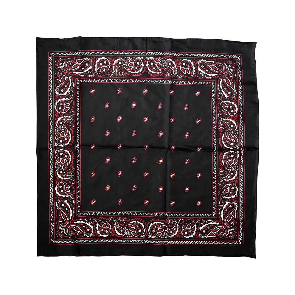 Elevate your accessory collection with our stunning silk scarf, featuring a classic paisley bandana print in striking black with vibrant red and white accents. Crafted from 100% pure silk, this scarf showcases an exquisite 8mm lightweight fabric that drapes beautifully, adding a touch of sophistication to any outfit.