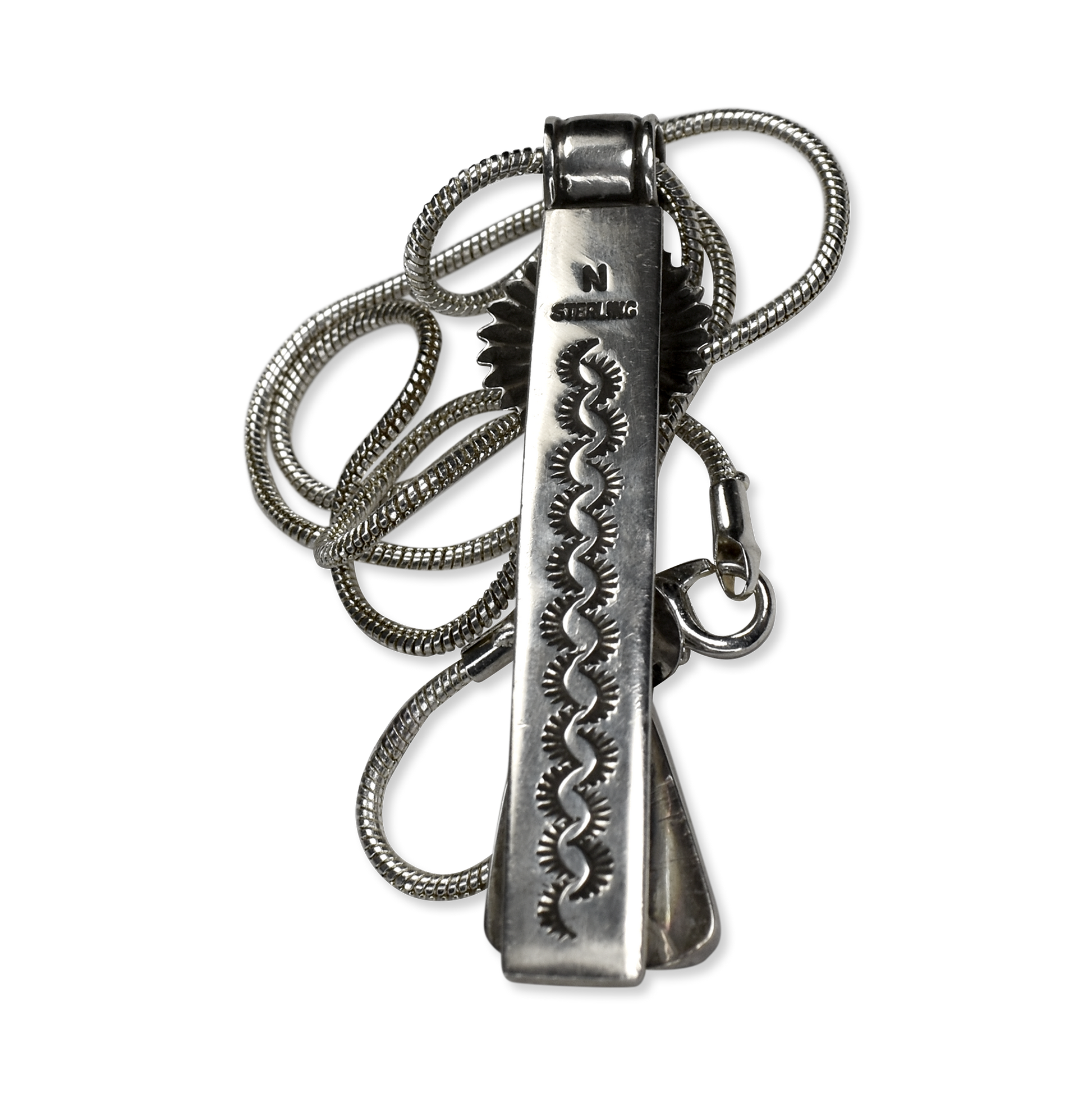 Elegant yet powerful, this pendant necklace captures the timeless dialogue between earth and light—a perfect statement of artistry rooted in Navajo tradition.