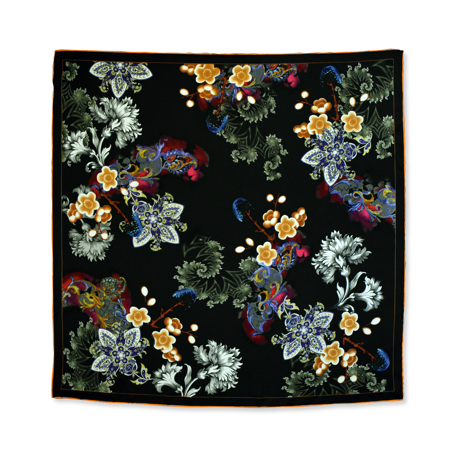 Measuring 34.5 inches square, this versatile silk bandana is perfect for adding a stylish accent to any outfit, whether worn around the neck, as a headscarf, or tied to a favorite bag. The hand-stitched hem enhances both durability and craftsmanship, ensuring a refined look that stands the test of time.