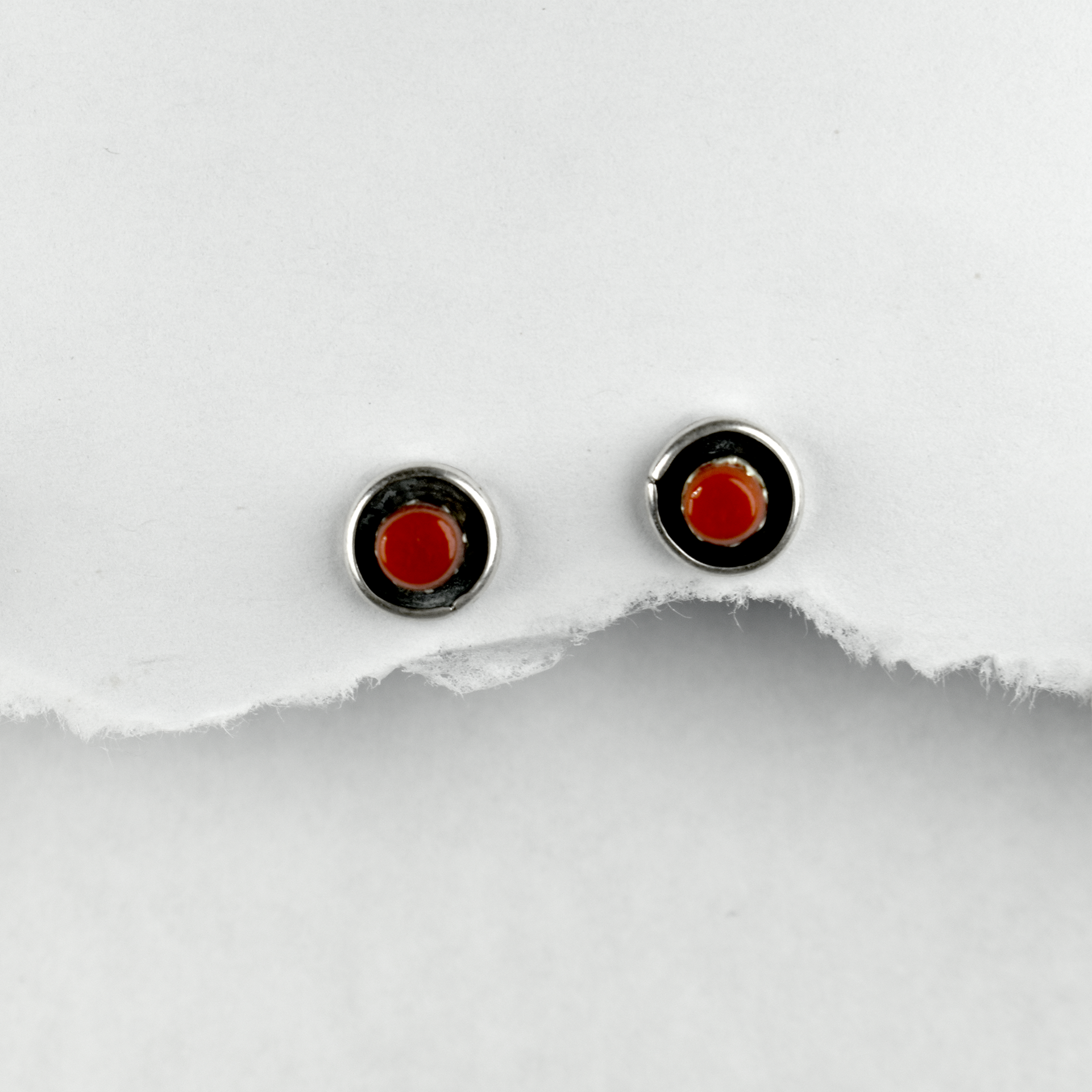 These Coral Shadowbox Stud Earrings by June Davis are a timeless accessory. Crafted with sterling silver circular studs, these pieces offer an elegant shadowbox design with a dark patina. The stylish and classic earrings are finished with polished coral centerpieces for an effortlessly sophisticated look.
