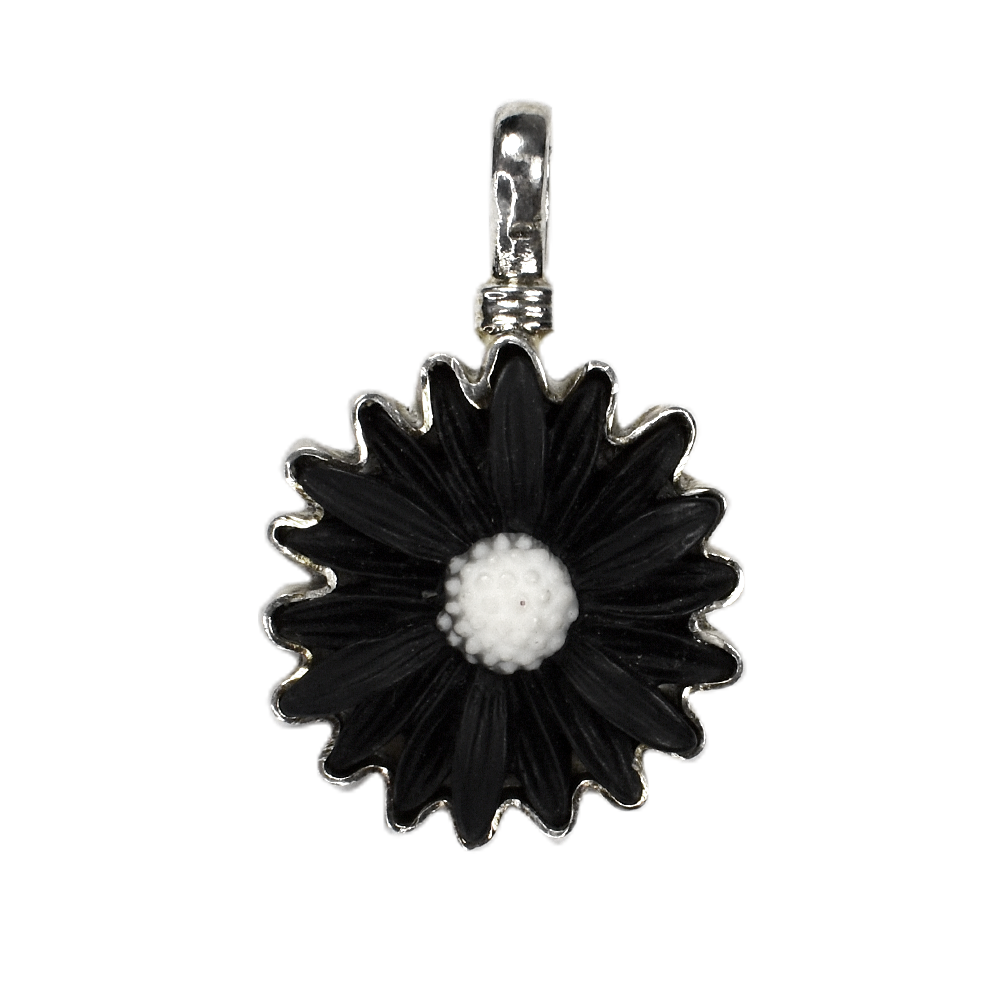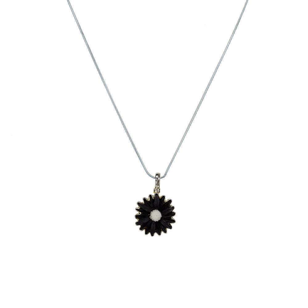 This charming pendant features a black daisy resin flower, perfect for creating a unique and personalized charm necklace. Layer it with other pieces for a one-of-a-kind look or wear it alone for a simple yet charming statement. Made to be versatile and stylish, this pendant is a must-have for any fashion-forward jewelry collection.