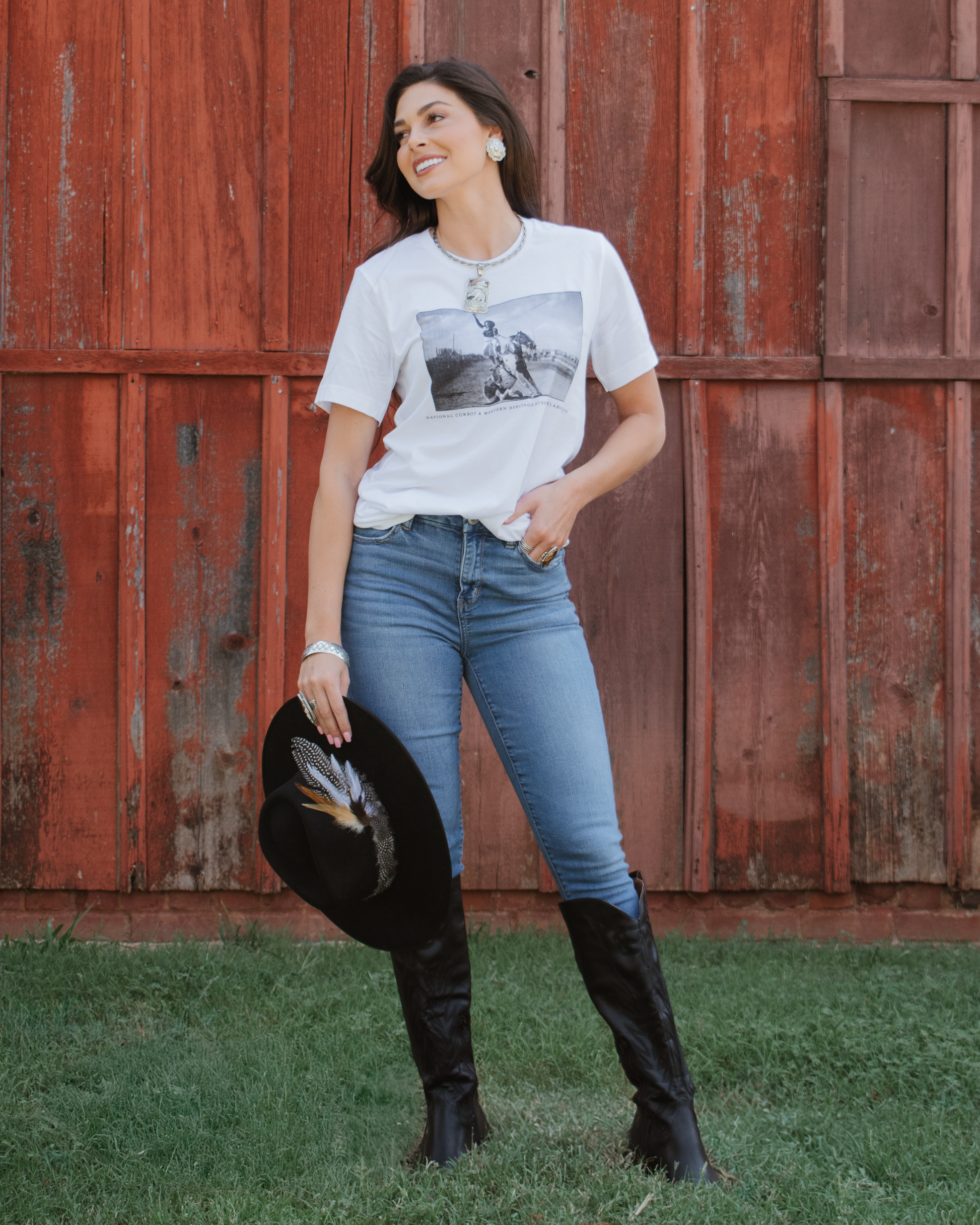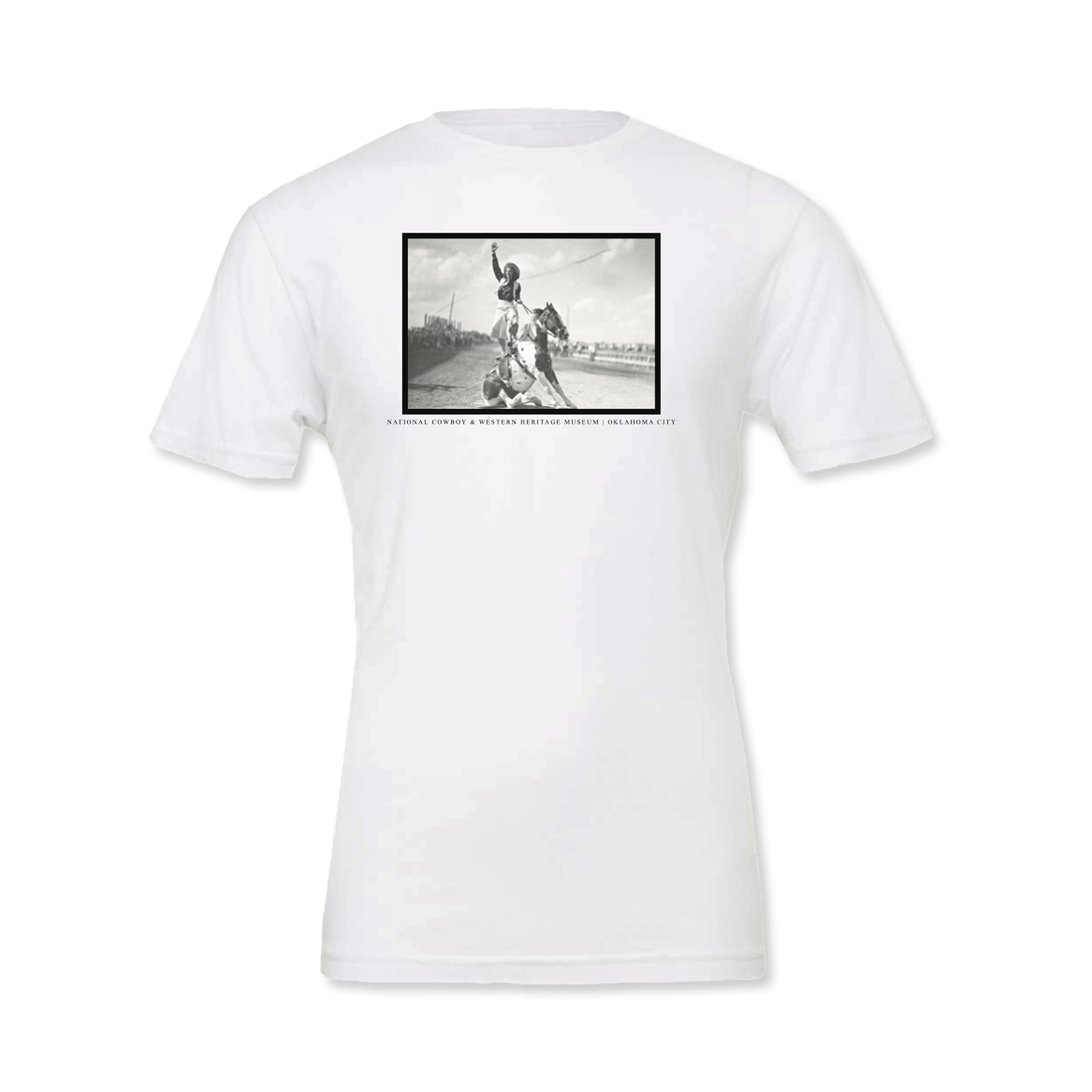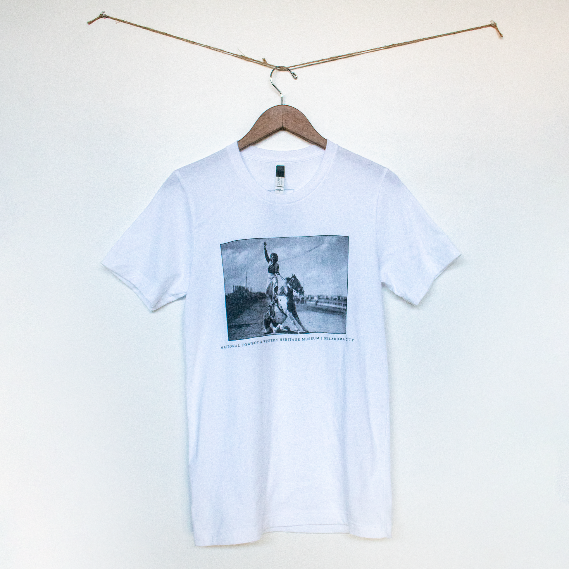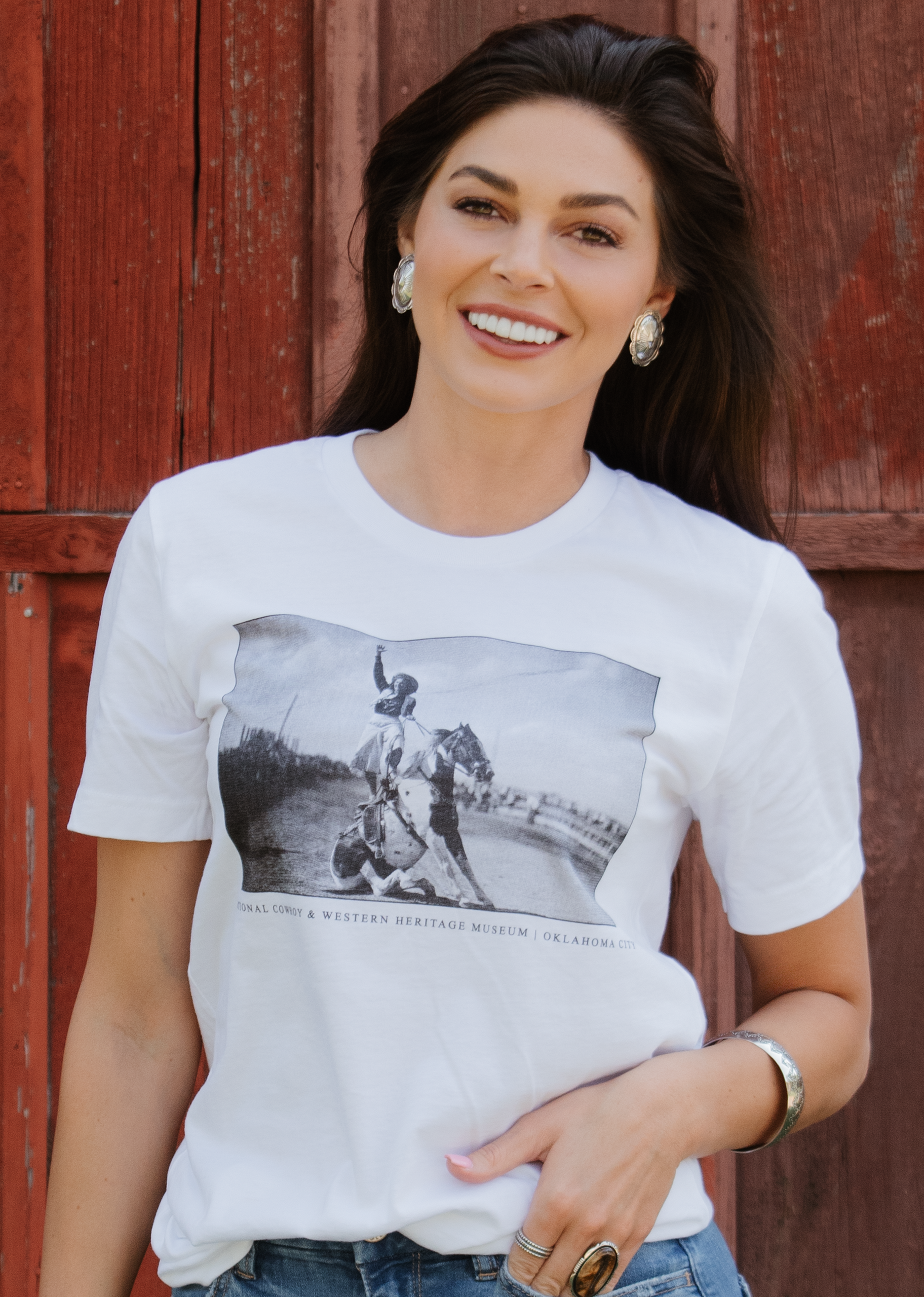 This piece of history not only showcases a powerful image but also supports the National Cowboy & Western Heritage Museum. By wearing this tee, you’re connecting with the rich legacy of rodeo women and contributing to the preservation of their stories.