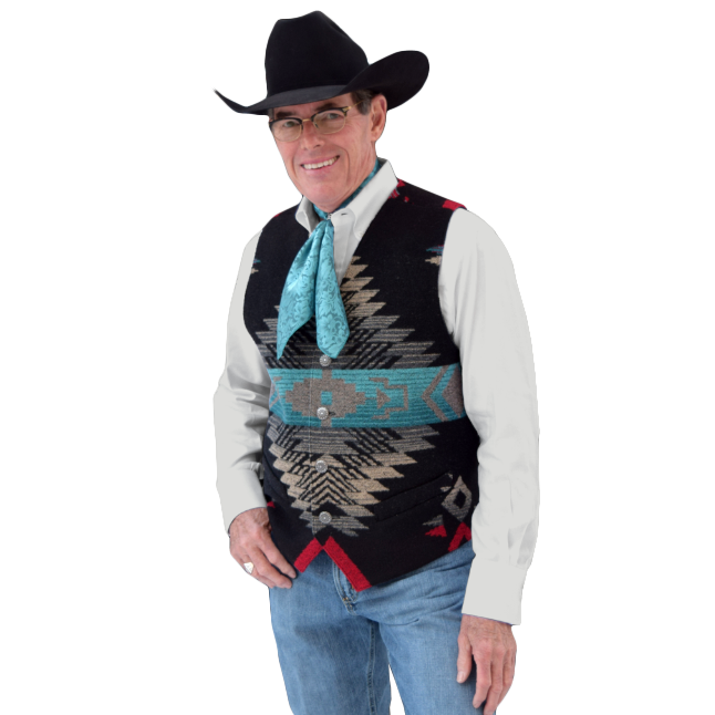 This grey patterned vest is crafted from a premium wool blend fabric with matching side seams for a sleek silhouette. Boasting mirrored fronts and a center back design with classic welt pockets and concho buttons, it is finished with an acetate lining for a refined look and feel. Perfect for the man of discerning taste.