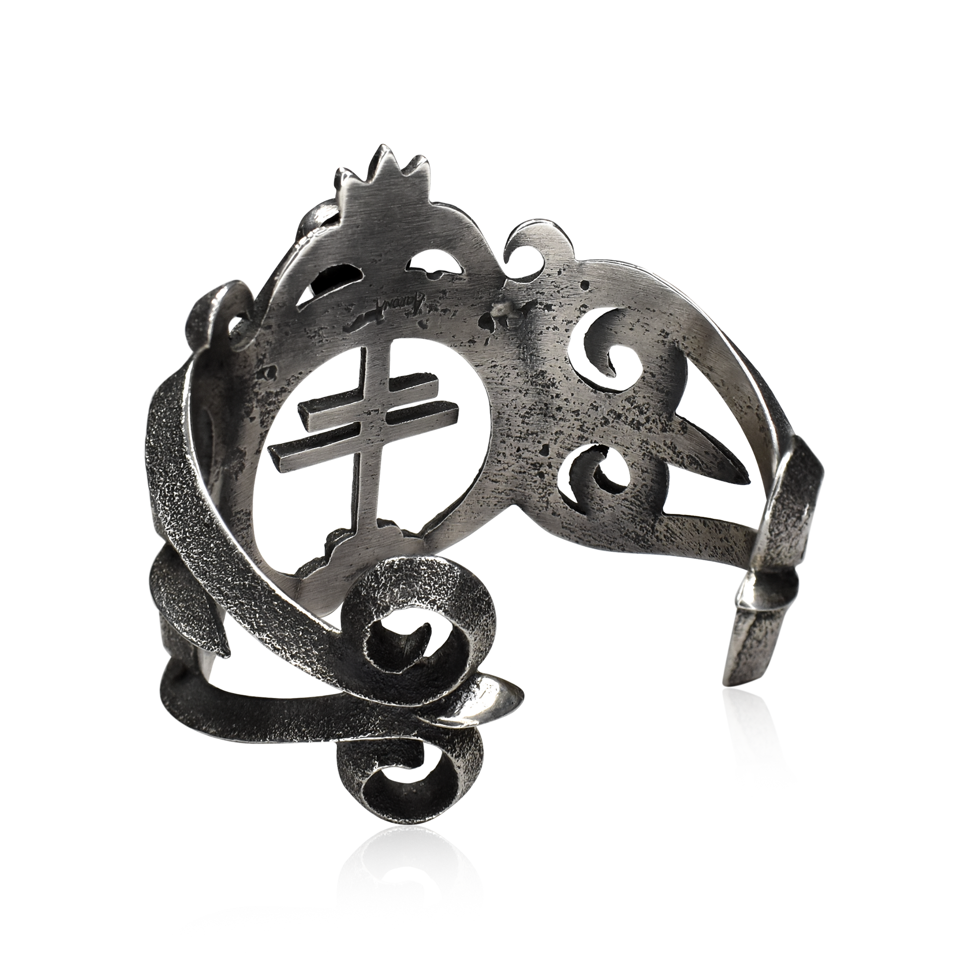 Measuring 2 3/4" wide, 2 1/4" high, with a 1" opening at the back, this cuff is a bold statement of heritage, craftsmanship, and spiritual symbolism. It is not just jewelry, it is a piece of living history, forged by a master and imbued with the legacy of the land and people it honors.