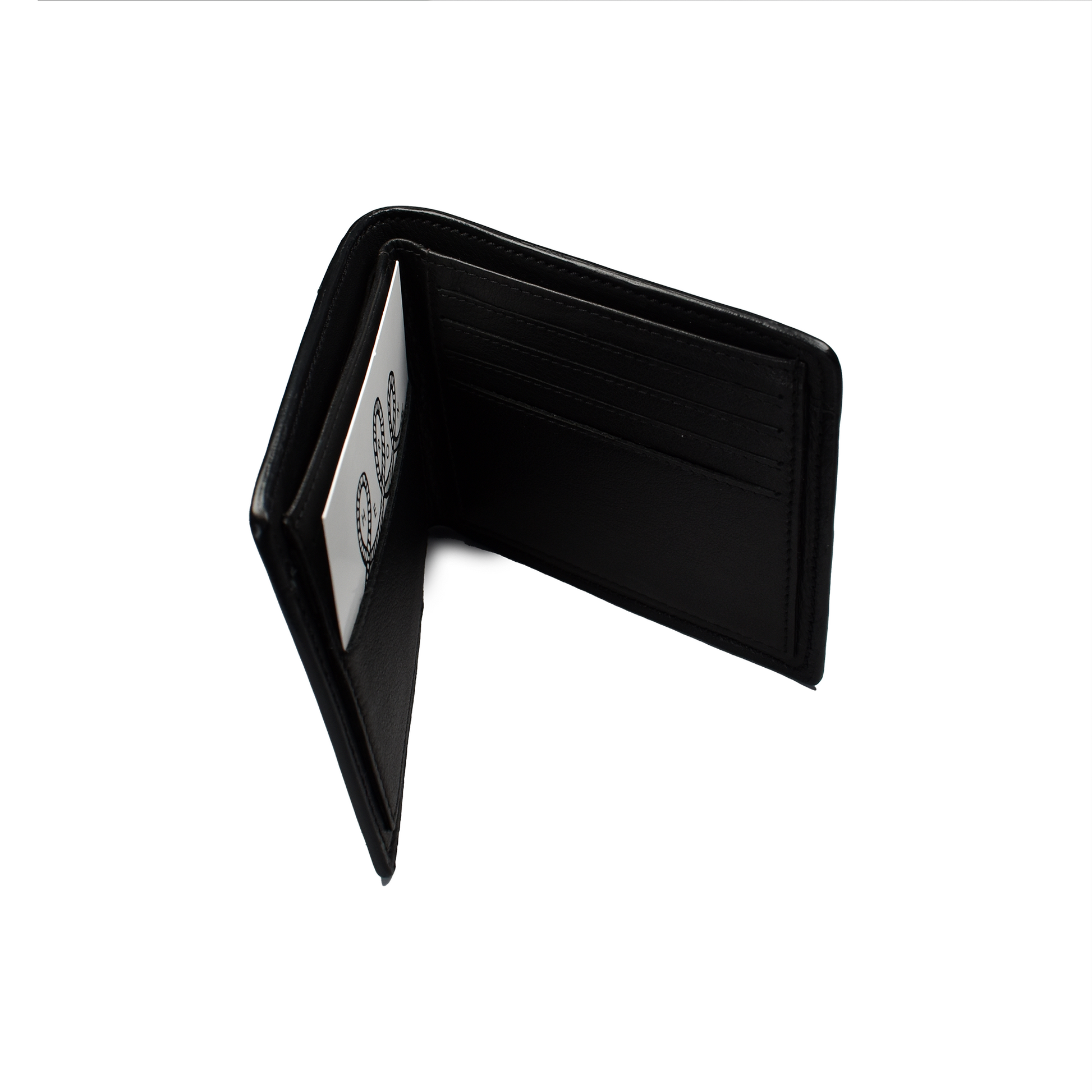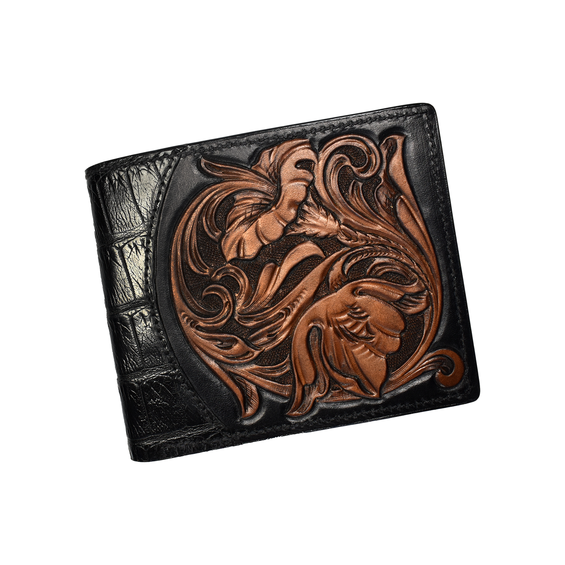 Heron Walk Black Caiman Bifold Wallet with Tooled Panel