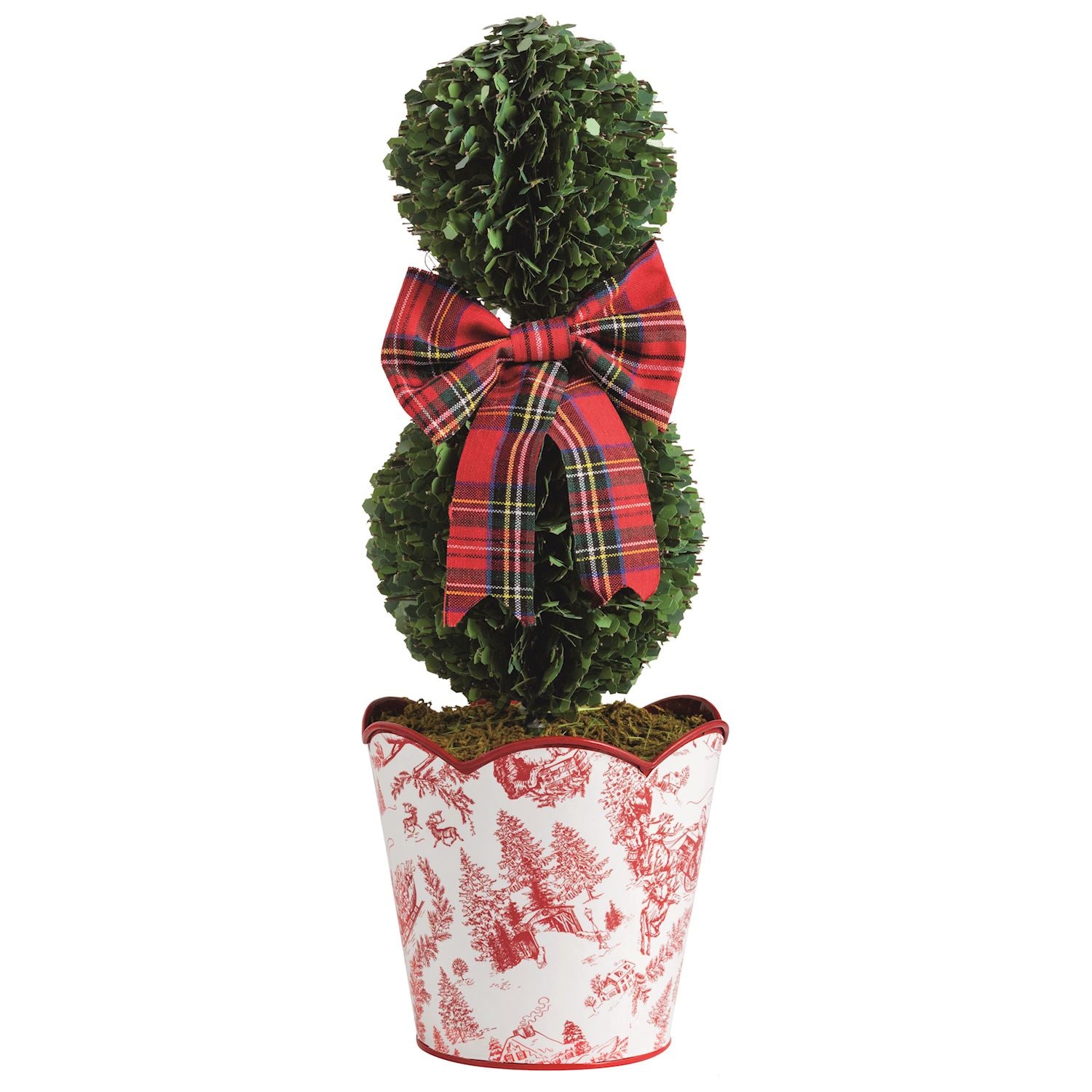 Holiday Toile Faux Boxwood Topiary with Tartan Bow