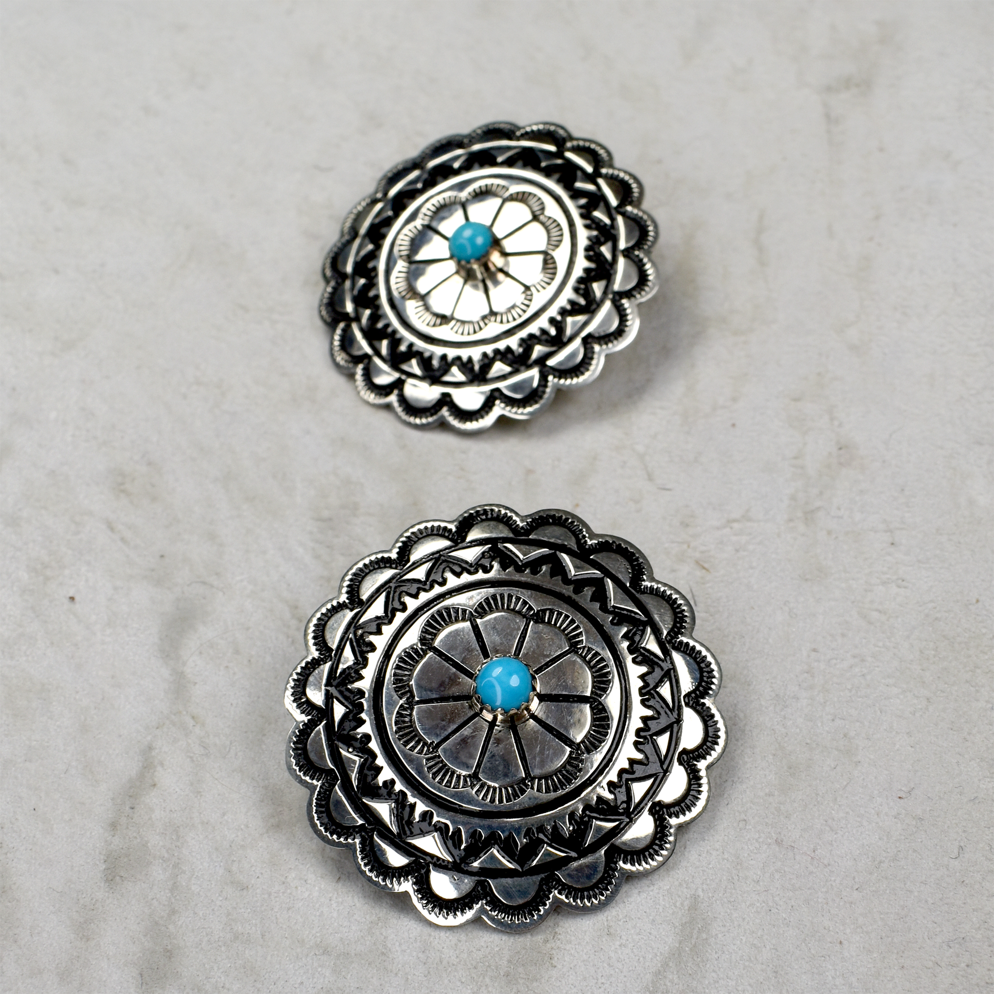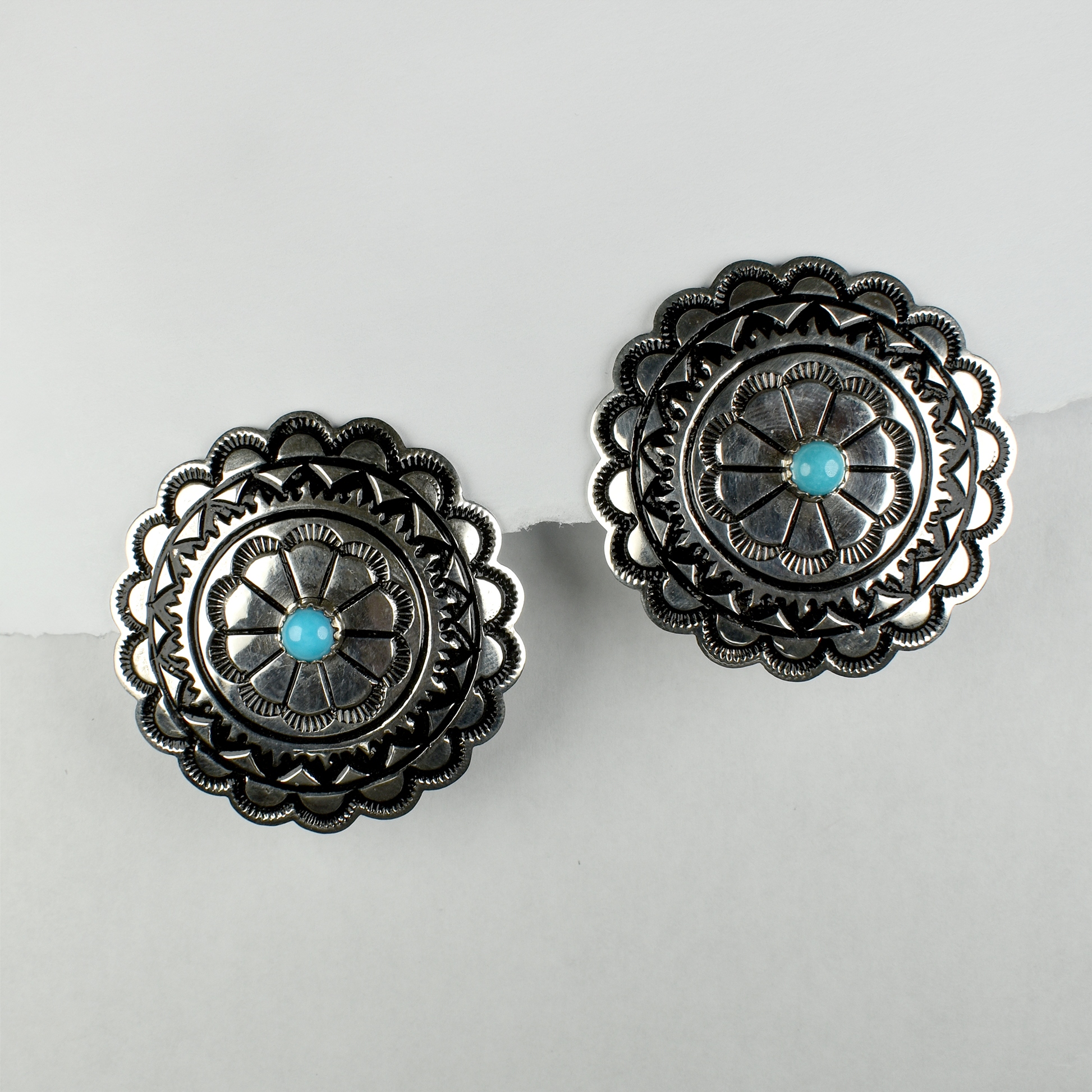 Large Concho Stud Earrings with Sleeping Beauty Turquoise Inlay by Emily Alonzo