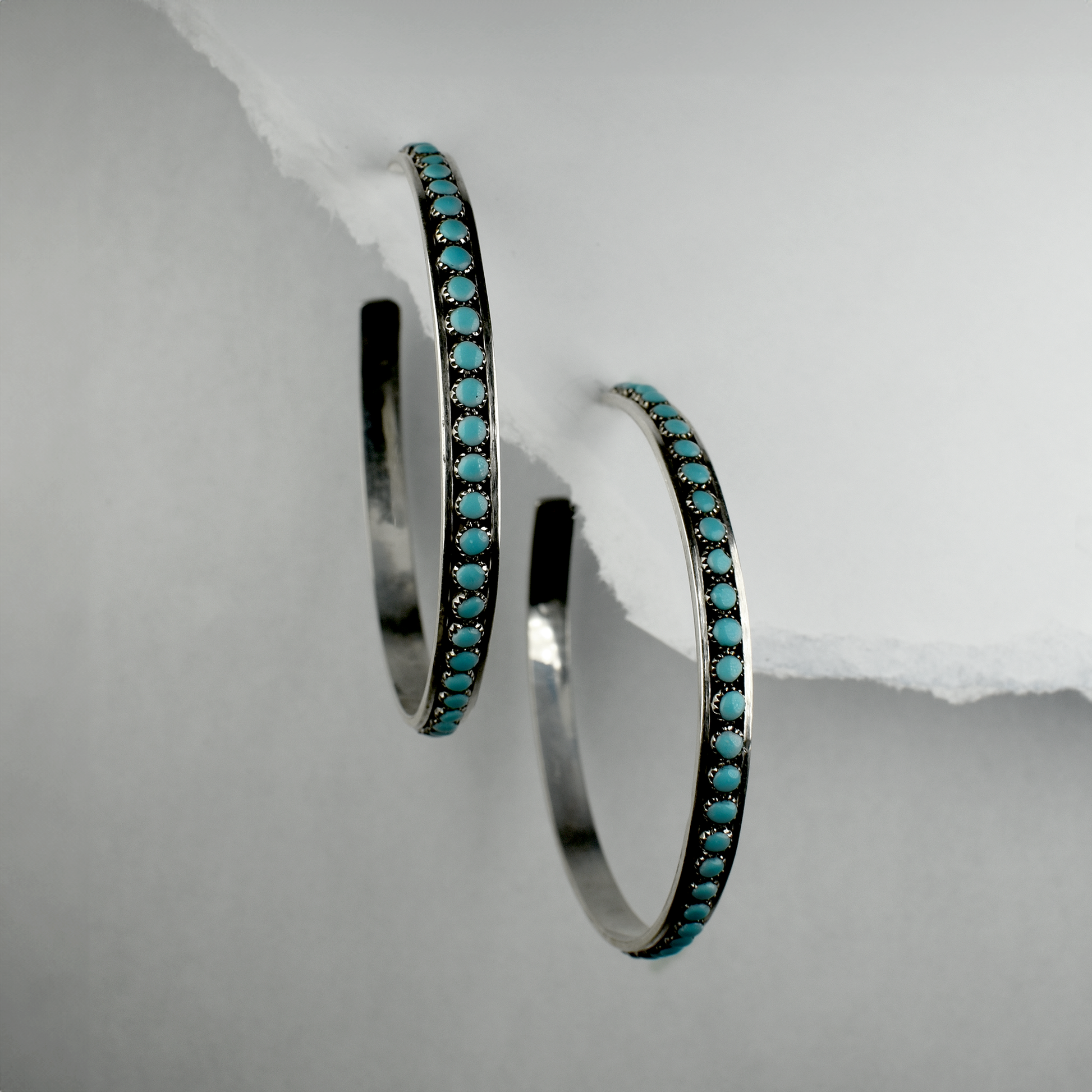 Large Sleeping Beauty Turquoise Snake Eyes Hoop Earrings by Lois Tzuni
