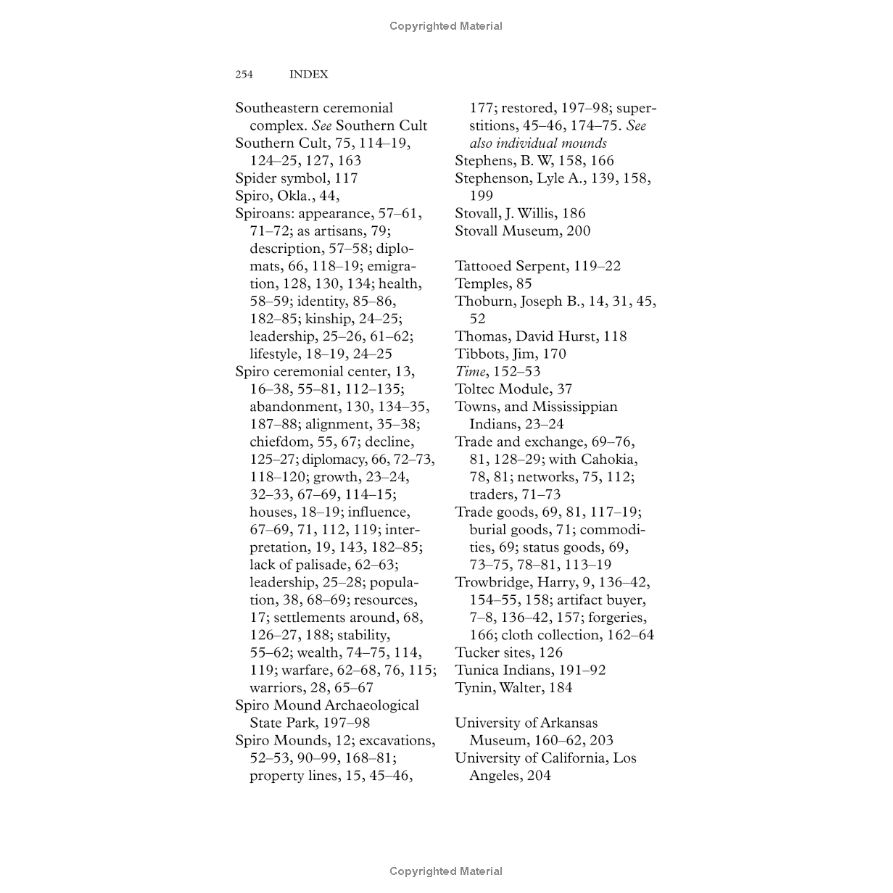 The looting of the mounds is considered one of the major archaeological tragedies of all time. Today Spiro artifacts are scattered among the world’s museums, with some still circulating in the antiquities market and eagerly snatched up by collectors. La Vere weaves a compelling story of grave robbers and lost treasures as he pieces together the puzzle of the civilization that thrived at Spiro from A.D. 800 to 1450. He plumbs the mystery of why the people of Spiro abandoned the site, leaving behind their treasures but no forwarding address.