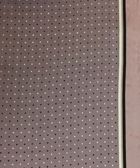 The charming mauve background is adorned with vibrant, multi-colored mini polka dots, creating a fun and lively design that captures attention and brings a whimsical flair to your style. Perfect for adding a pop of color, this scarf transitions effortlessly from casual outings to special occasions.