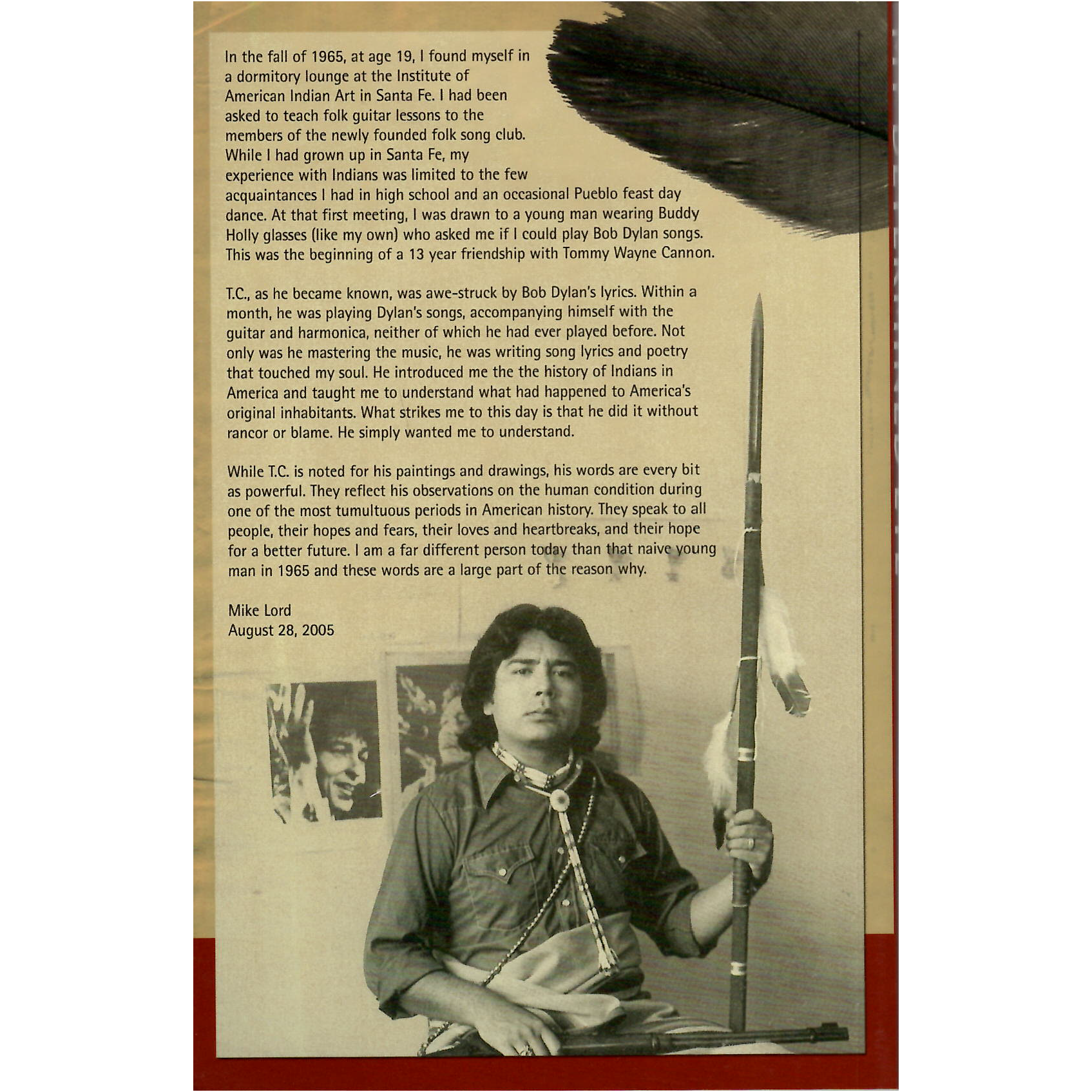 "In the fall of 1965, at age 19, I found myself in a dormitory lounge at the Institute of American Indian Art in Santa Fe. I had been asked to teach folk guitar lessons to members of the newly founded folk song club. While I had grown up in Santa Fe, my experience with Indians was limited to the few acquaintances I had in high school and an occasional Pueblo feast day dance. At that first meeting, I was drown to a young man wearing Buddy Holly glasses (like my own) who asked me if I could play Bob Dylan songs. This was the beginning of a 13 year friendship with Tommy Wayne Cannon.