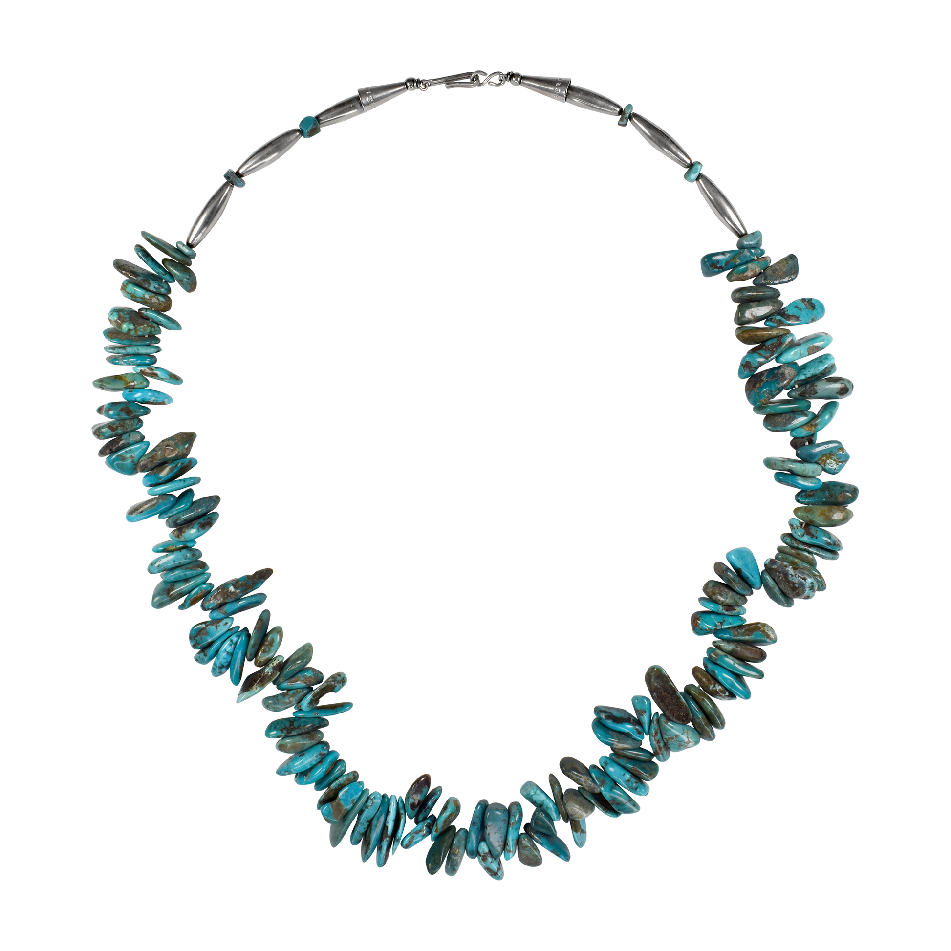 Navajo Kingman and Sleeping Beauty Turquoise Necklace with Sterling Silver Torpedo Beads
