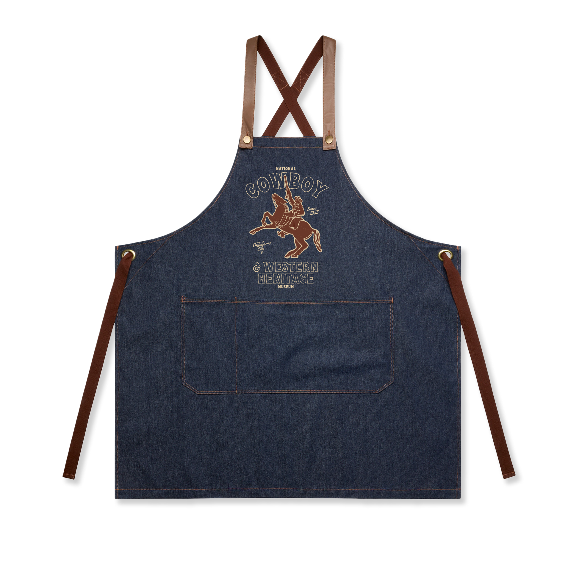 Rugged, functional, and inspired by a legend. This heavyweight 10.3 oz (350 GSM) 100% cotton denim apron is a tribute to the spirit of the West, featuring a design inspired by our iconic Buffalo Bill statue. Whether you're working the grill, the bench, or the barn, this apron blends durability with Western heritage.